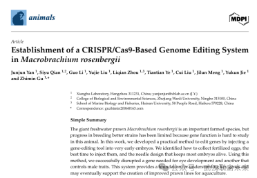 近日,湘湖實(shí)驗(yàn)室淡水水產(chǎn)核心種源創(chuàng)制團(tuán)隊(duì)在羅氏沼蝦基因編輯關(guān)鍵技術(shù)上取得了重要突破。